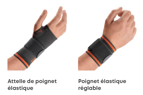 - Poignet élastique : reprise d’activité après traumatisme, prévention des lésions ligamentaires, tendinite, ténosynovite bénigne.