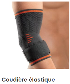 - Coudière élastique : épicondylite, épitrochléite, contusion, inflammation et traumatisme léger, reprise d’activité.