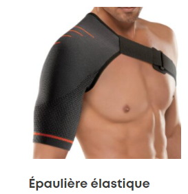 - Epaulière élastique : tendinopathie, légère instabilité ou inflammation post traumatique, reprise d’activité.