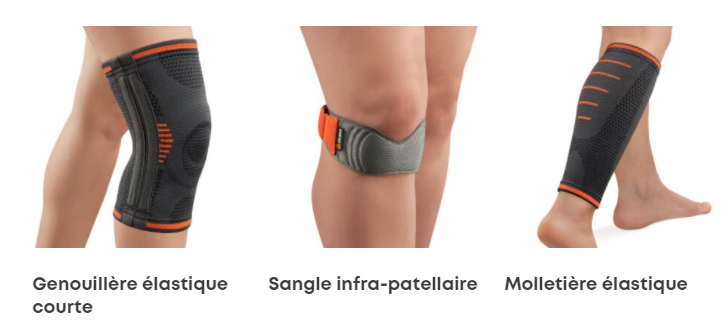 - Molletière élastique ou manchon de compression : pathologies musculaires, prévention des crampes.